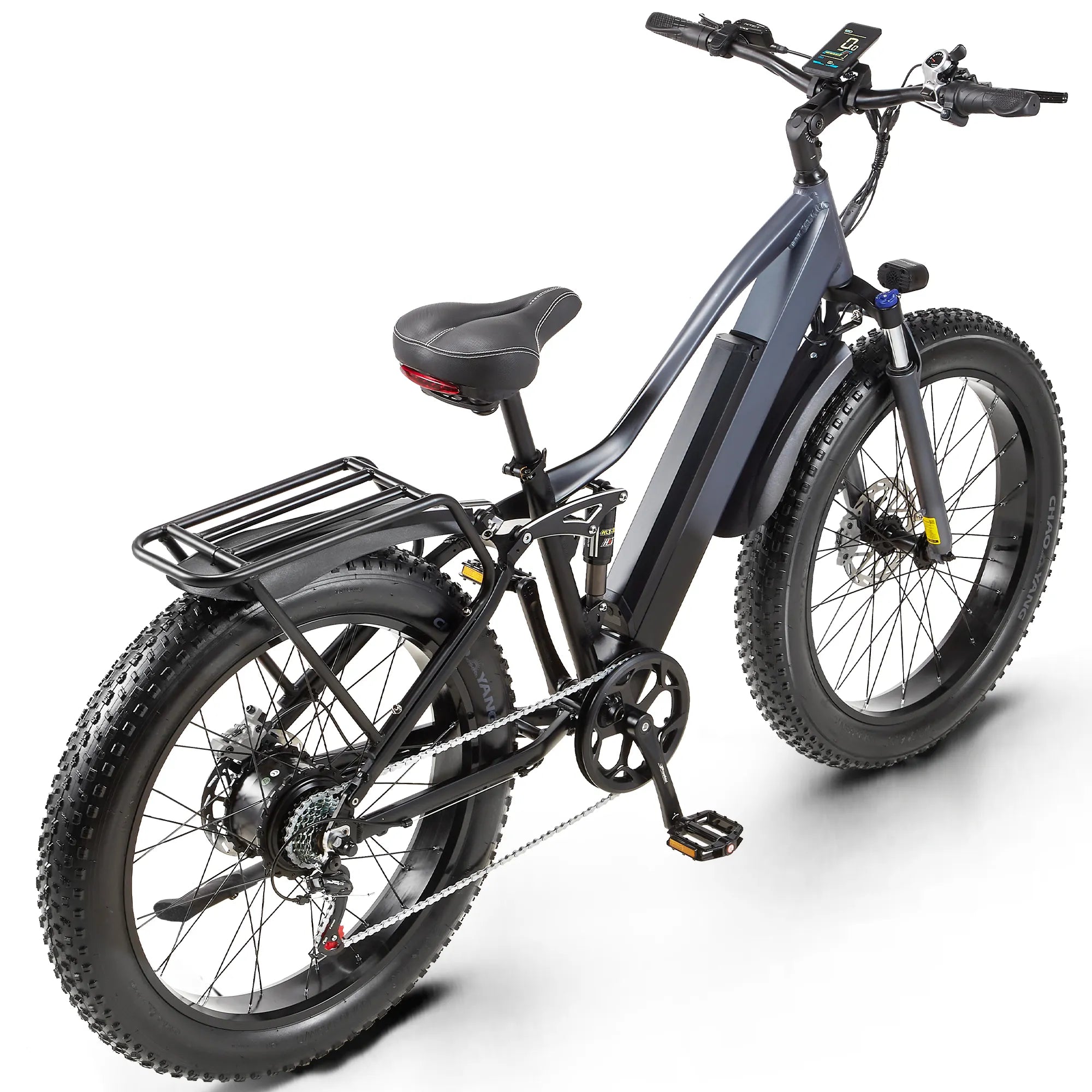 Get ready to conquer any trail with the CMACEWHEEL Electric Bike TP26! Featuring sturdy 26x4.0-inch tires and dual suspension, this e-mountain bike promises a smooth ride over rough terrain. Its powerful 20Ah battery keeps you going longer, while the 7-speed gear system lets you switch up your pace with ease. Adventure awaits—ride it your way and have a blast!