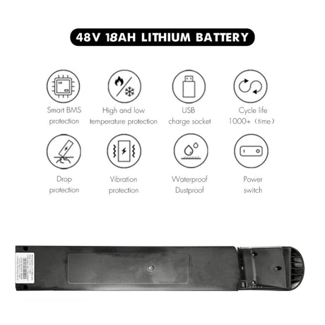 In stockSale priceFrom $576.80 USD Regular price $663.60Unit priceUnavailableElectric Bike Battery 48V18AH for TP26 / TP26 MINI