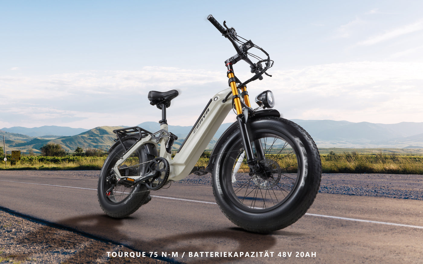 Enjoy the ride with the CEAYA Electric Bike A20 PRO! The compact body packs a powerful 75 NM output with 20’ fat tyres, dual suspension and adjustable handlebars.