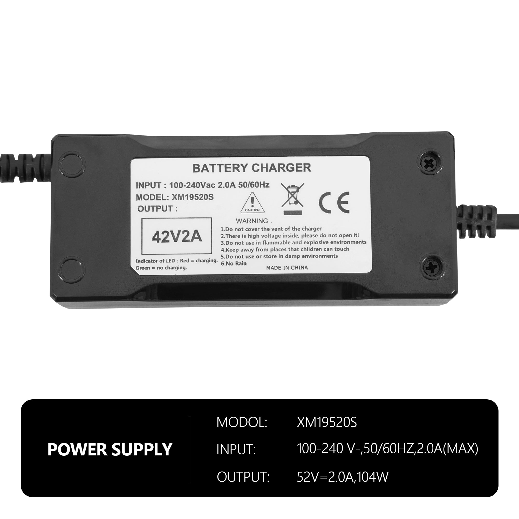 - Ce chargeur est compatible avec la batterie au lithium du vélo électrique CMACEWHEEL F700. Veuillez vérifier la compatibilité de votre batterie avec ce chargeur avant tout achat.