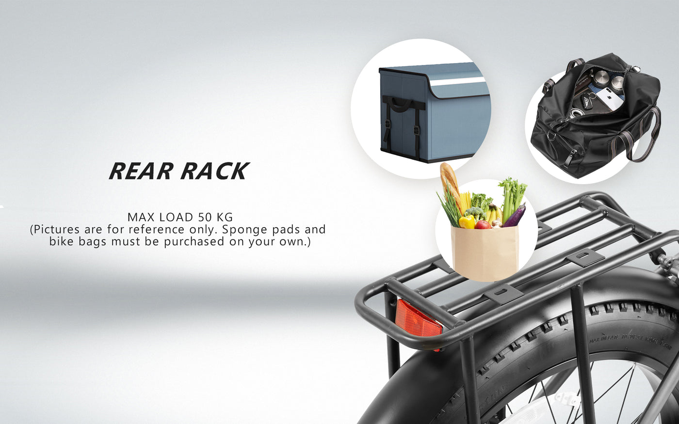 Le nouveau vélo électrique pour neige RX50 est un vélo électrique qui combine les déplacements urbains avec les performances tout-terrain. Le puissant système d'assistance moteur, les pneus larges de 26*4.0" vous permettent de faire face à plus d'ajustements de la route et la batterie au lithium d'une capacité de 20 Ah vous permet de rouler plus loin. Le porte-bagages arrière peut être installé pour les déplacements quotidiens. Vous le méritez pour un voyage respectueux de l'environnement !