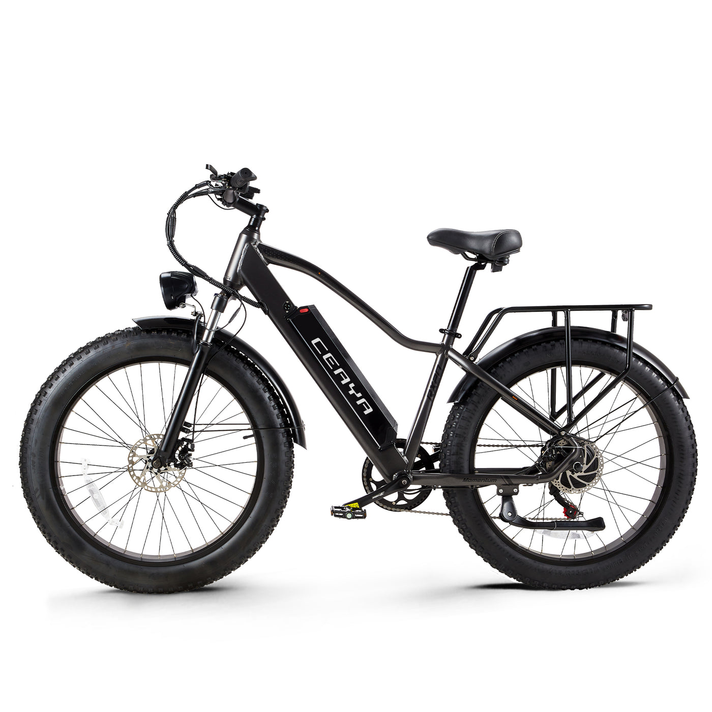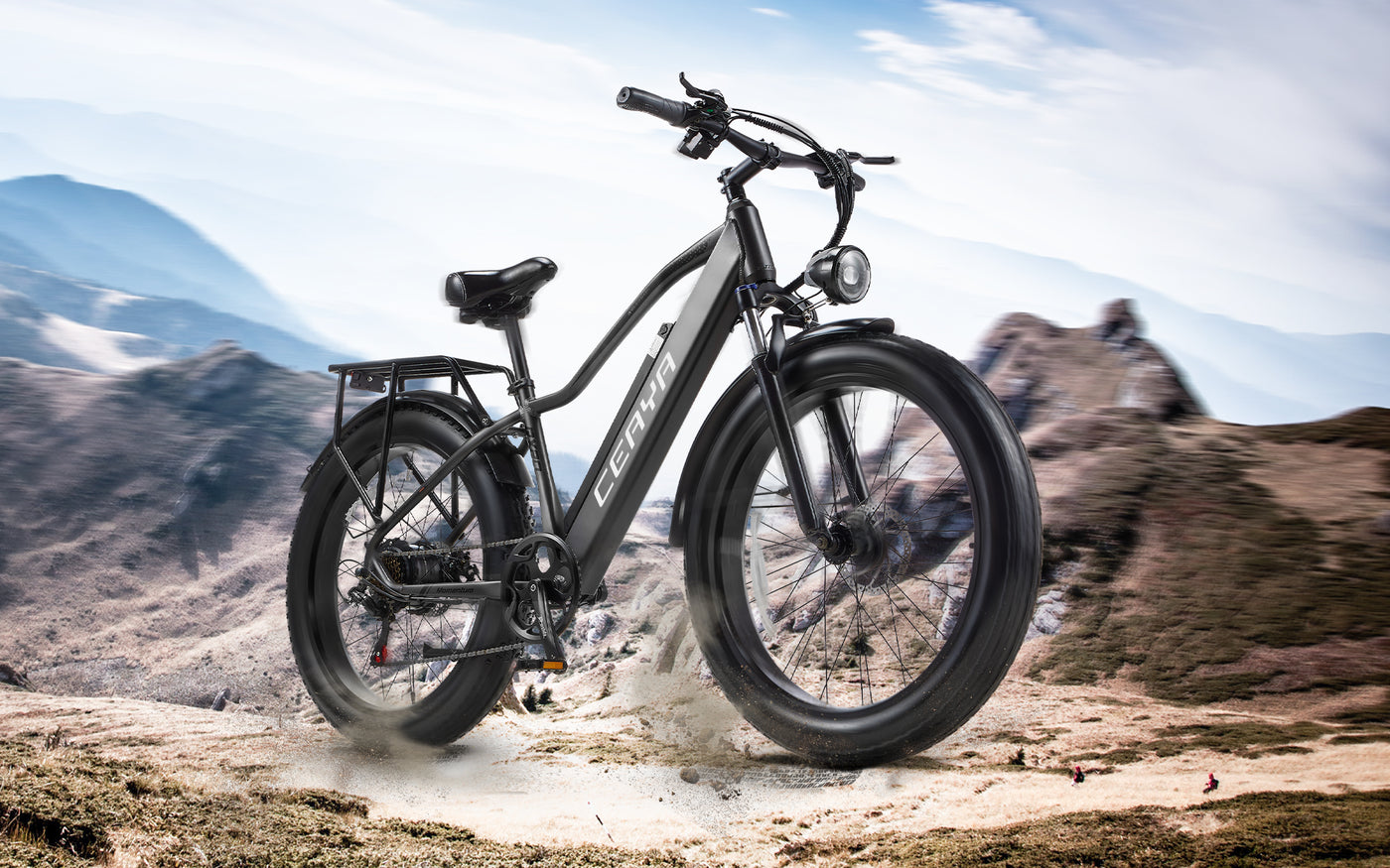 - PNEUS TOUT TERRAIN - Le vélo électrique équipé de pneus larges de 26" x 4,0" de large sur des jantes ultra-larges se coordonne, avec l'ajout de la conception de la bande de roulement antidérapante, avec une excellente fourche avant à suspension et une tige de selle, offrant traction et stabilité, vous aide à traverser facilement la jungle, le sable, la plage rocheuse, la neige, les flaques d'eau et d'autres terrains interdits.