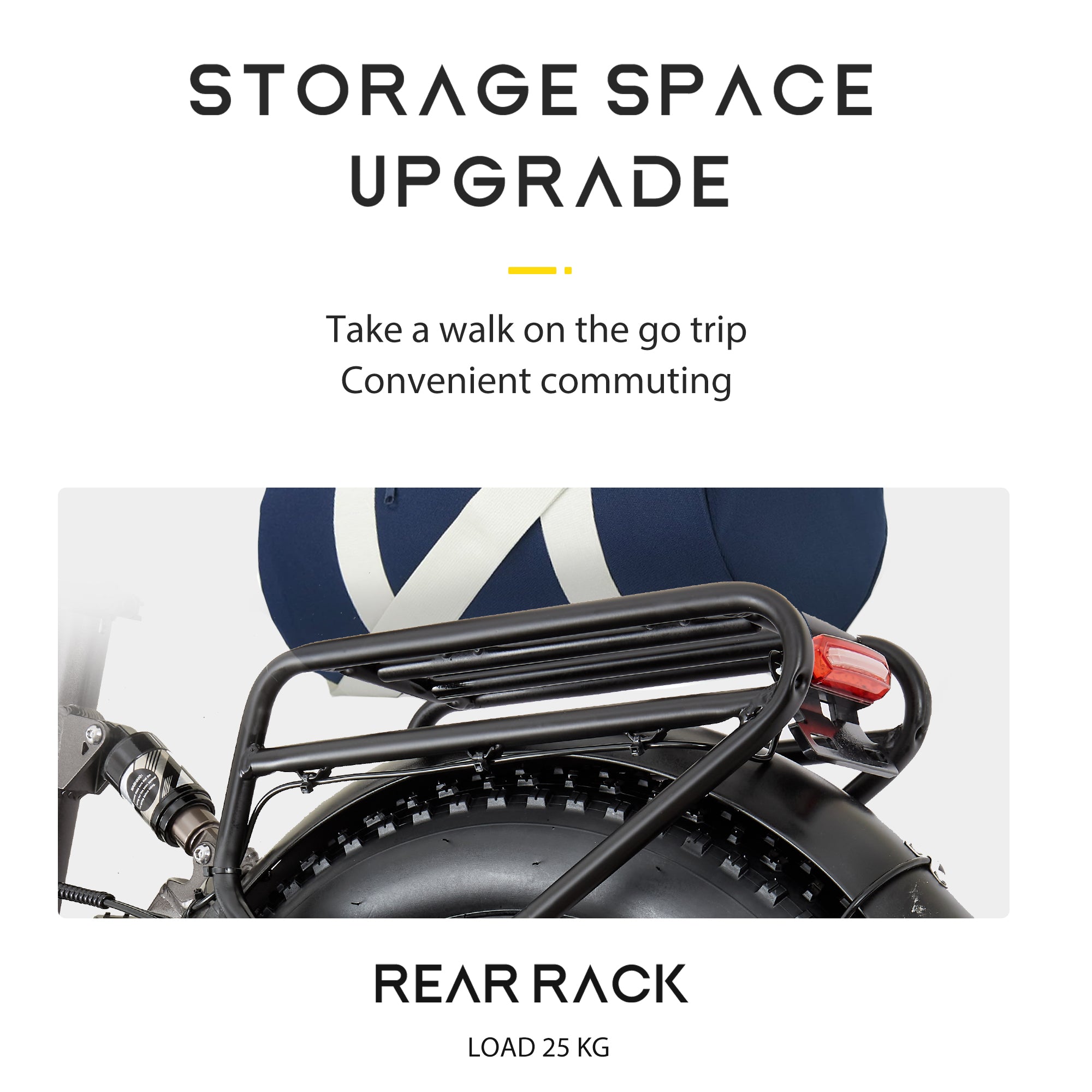 Możliwość doposażenia bagażnika tylnego siedzenia w koszyk o dużej pojemności do codziennego użytku i zakupów. Może pomieścić do 25 kg, dzięki czemu nie musisz się martwić, że nie masz gdzie umieścić swoich codziennych przedmiotów.