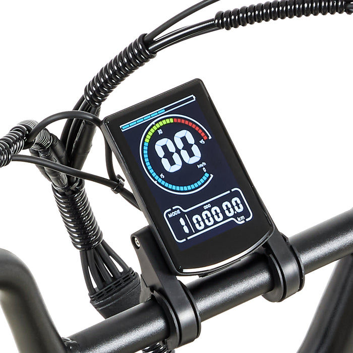 Dane prędkości, poziom wspomagania, wskaźnik naładowania akumulatora, przebieg, monitorowanie temperatury kontrolera. Czytelny w dzień i w nocy.