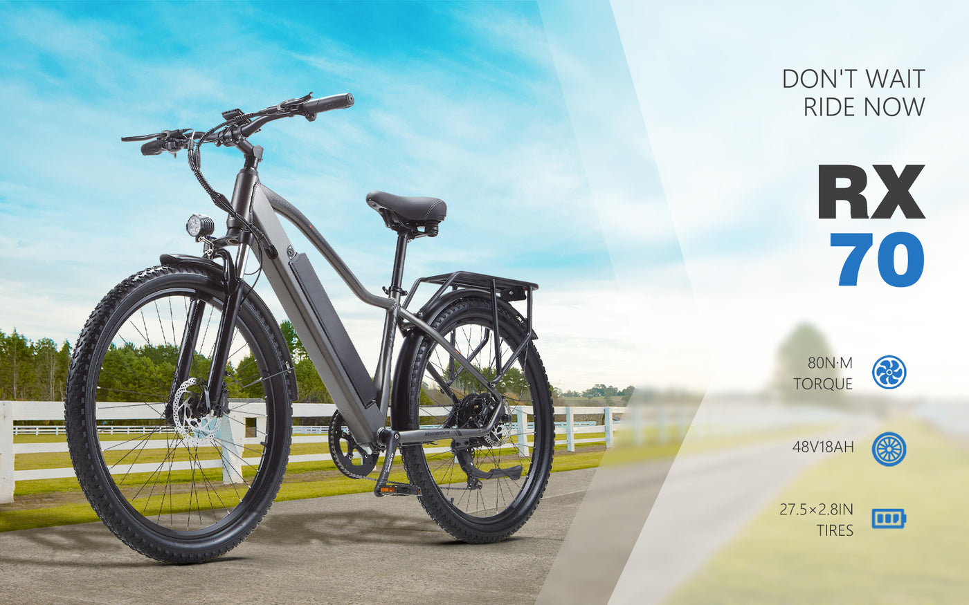 With output of 800W peak and an impressive torque of 70Nm, our electric bike is ready to take on any challenge.Whether you're climbing steep hills or carrying a heavy load up to 400 pounds, our motor delivers the performance you need.