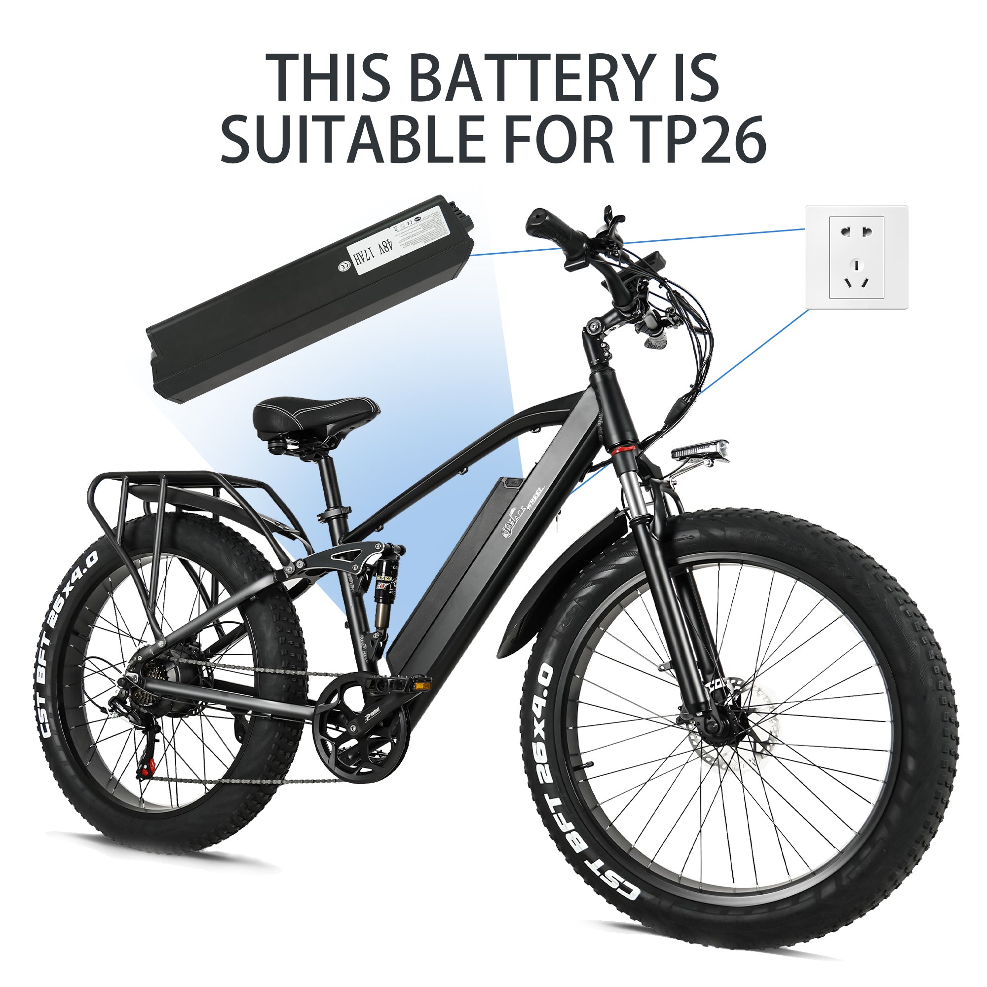 • ⚡ 【Special Battery】Weighing only 4.76KG, the battery can be used for the e-bike TP26/ TP26 MINI. 365-Day warranty, if there is a quality failure, it will only be replaced and not repaired, you can use it with confidence.